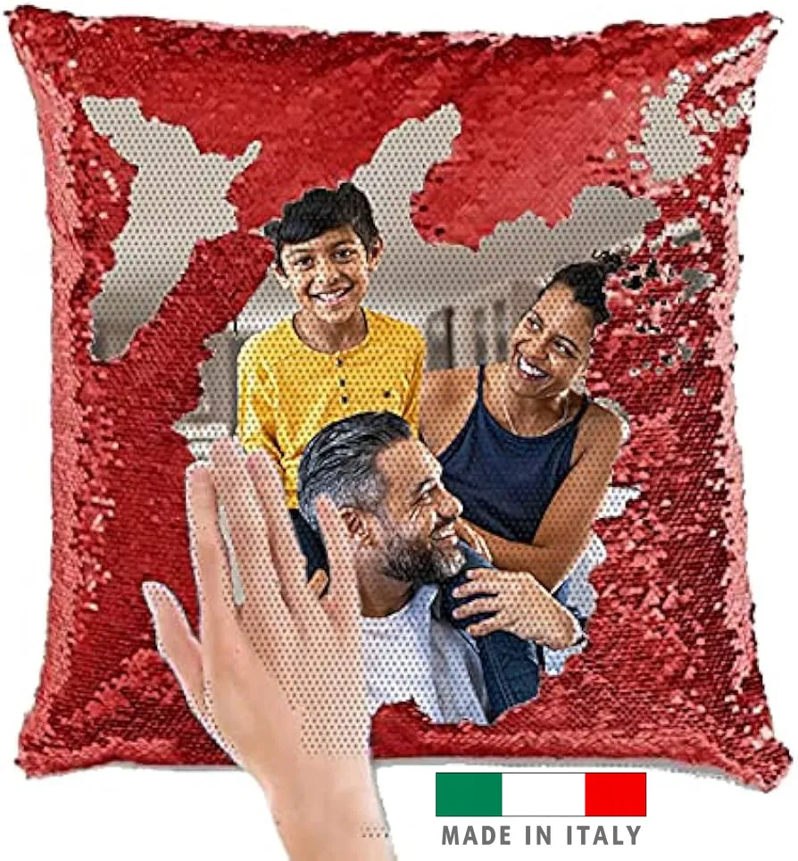 Cuscino paillettes foto personalizzati con foto logo stampa scritta nome frase per mamma cuscini festa della mamma consegna veloce economiche